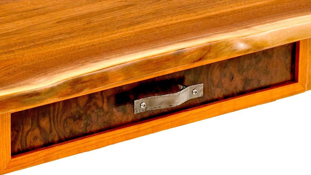 “The inspiration behind the Van Gogh was a single piece of walnut that had such an incredible grain and deep curl pattern that I didn’t want to cut it or modify it in any way. So instead I built a frame around it. The name comes from a store in Illinois where I went to buy supplies, it was called Ear in an Envelope.”