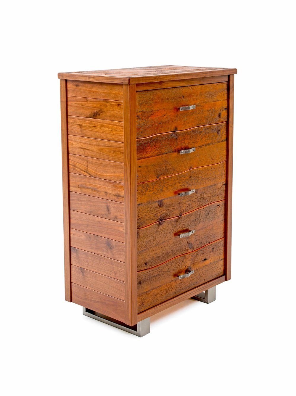 The Van Gogh line is whimsical and dynamic. The bed features an innovative headboard which can hang interchangeable pieces of wood “art” suitable for differing styles and tastes. Pieces are accented by non-linear drawer faces, stainless steel hand-hammered hardware, walnut casings and barn wood faces.